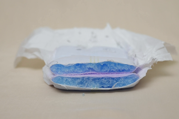 Lõi thấm hút với hạt gel thông minh trải đều trên bề mặt giúp tăng tốc độ thấm hút, dàn đều chất lỏng nhanh chóng, đồng thời khóa chặt chất lỏng ngăn thấm ngược trở lại. Hạt gel có tính ưa nước, có thể chứa gấp 50 lần thể tích bản thân, nên tăng sức chứa của tã trong khi vẫn đảm bảo độ mỏng đáng ngạc nhiên. Chất lỏng được dàn đều cũng giúp chiếc bỉm không bị vón cục, chảy xệ gây mất thẩm mỹ và khó vận động cho bé.