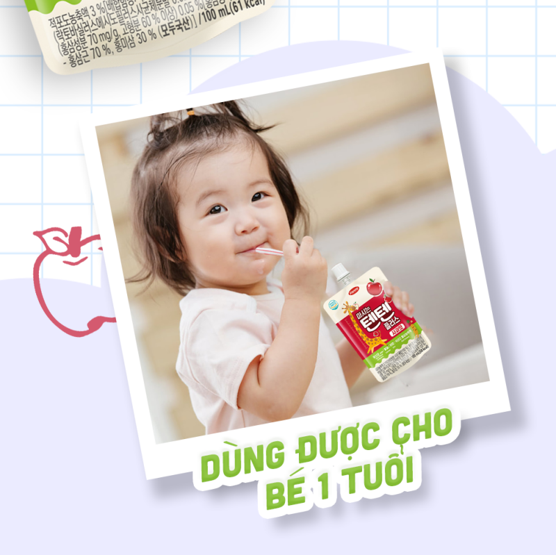 Nước trái cây hồng sâm Hanmi TenTen vị đào, vị táo, vị nho: bổ sung hồng sâm 6 năm tuổi cô đặc kết hợp men vi sinh độc quyền cùng hàm lượng siêu lớn nước ép trái cây, Hanmi Tenten giúp bé ăn ngon, ngủ ngon, da dẻ hồng hào, tăng cường sức đề kháng, tăng khả năng hấp thụ thức ăn, hỗ trợ tăng trưởng đối với bé yêu trong độ tuối phát triển.