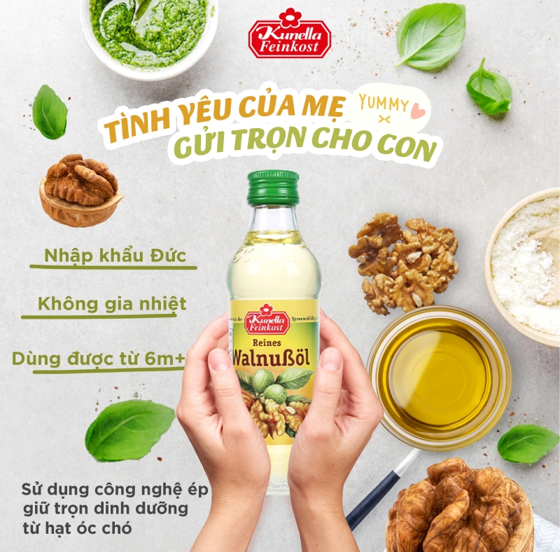 Mẹ tham khảo 5 loại dầu ép lạnh chính hãng tại: https://kunella.vn/dau-100ml