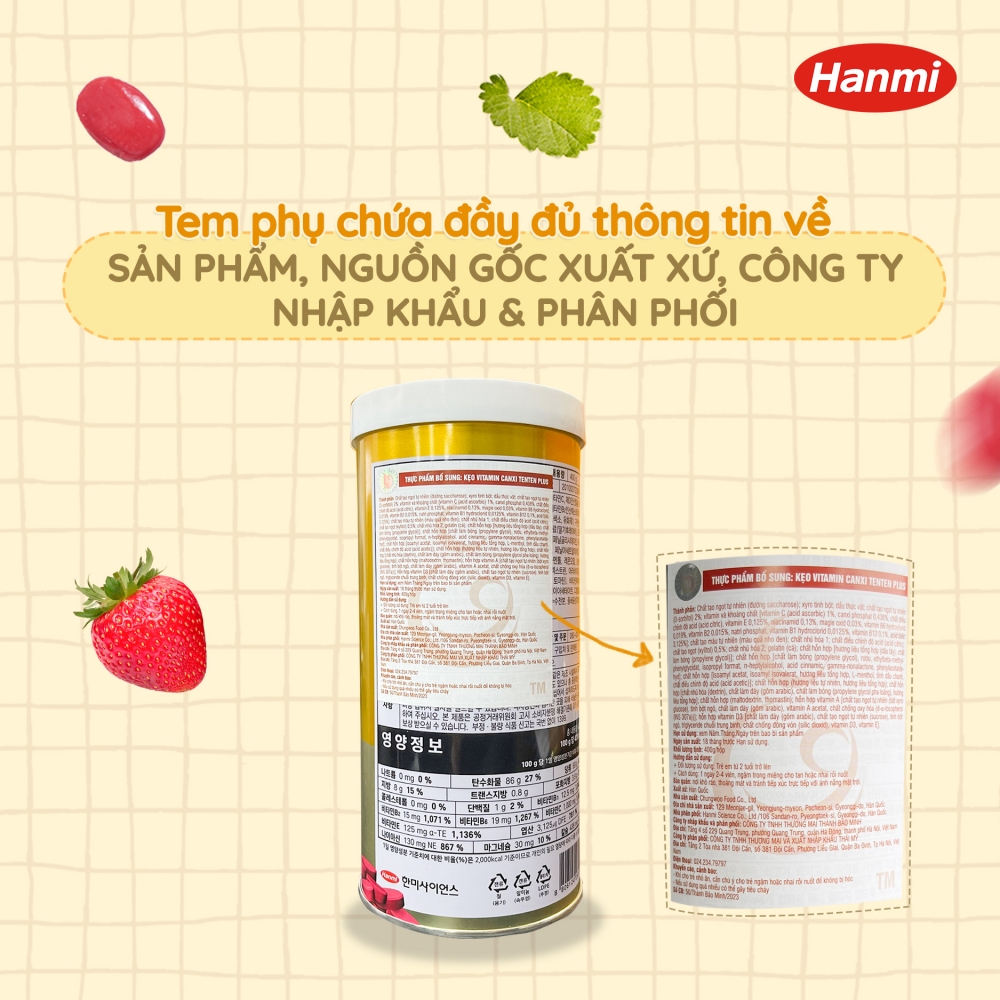 Để tránh nhầm lẫn với các sản phẩm xách tay có nguồn gốc từ thị trường nội địa Hàn Quốc, kẹo Vitamin Canxi TenTen Plus nhập khẩu có bao bì, nhận diện và hệ thống tem phụ đặc trưng nhưng không làm thay đổi về chất lượng vốn có.