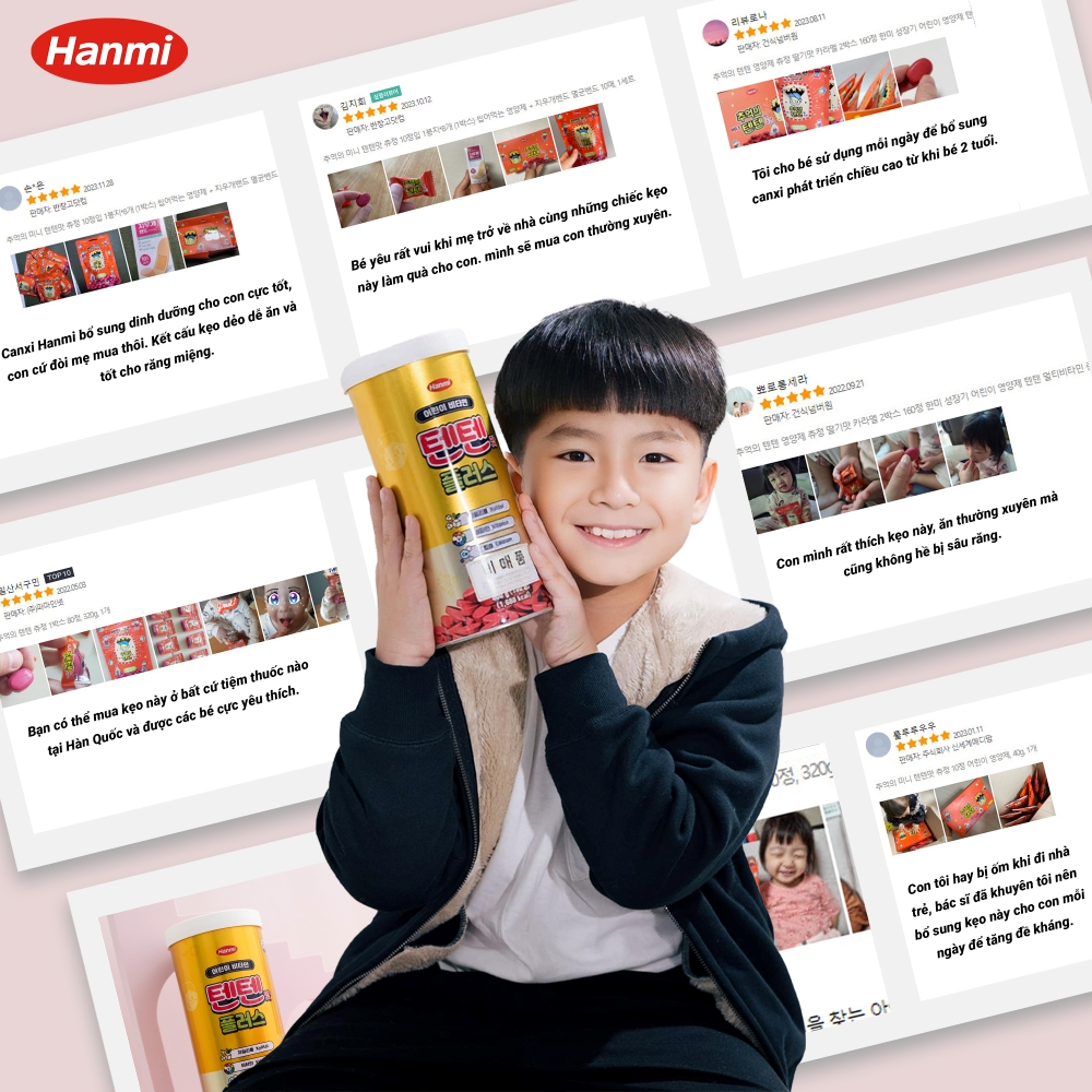 Hanmi là tập đoàn dược phẩm lâu đời nổi tiếng tại Hàn Quốc, bao gồm rất nhiều các công ty con phụ trách sản xuất các mảng dược phẩm, thực phẩm, thực phẩm chức năng khác nhau. Trong các dòng sản phẩm của Hanmi, kẹo Vitamin Canxi Tenten Plus nổi tiếng nhờ những lợi ích rõ rệt cho sức khỏe, trong đó có khả năng hỗ trợ tăng cao cho trẻ nhỏ.