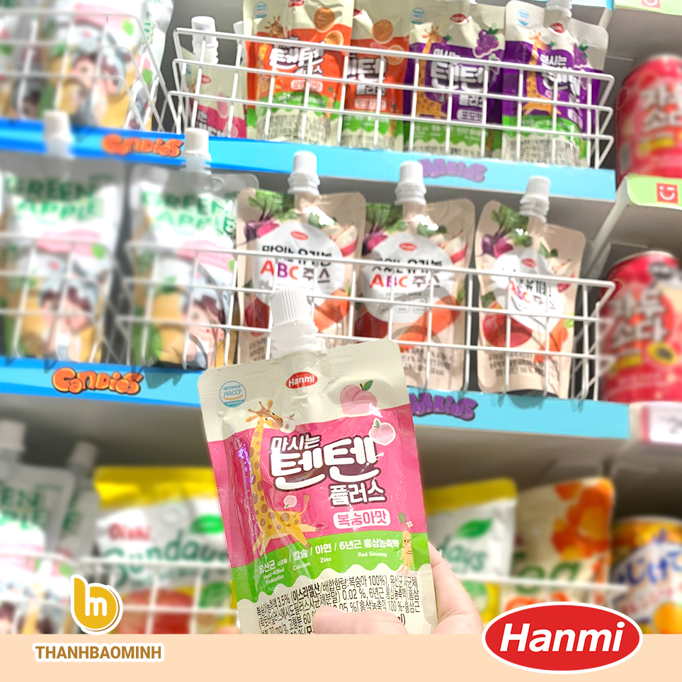 Luôn nằm trong top các sản phẩm chứa hồng sâm được yêu thích nhất trong nhiều năm qua, nước trái cây hồng sâm Hanmi Tenten là lựa chọn ưu thích cho cả gia đình. Thành phần kết hợp giữa nước ép trái cây tự nhiên và hồng sâm 6 năm tuổi của Hanmi Tenten bổ sung năng lượng, tăng cường đề kháng, giúp hỗ trợ hấp thu và tăng trưởng chiều cao.