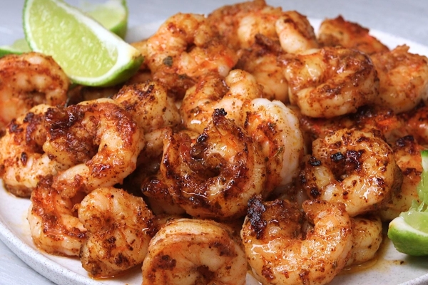 Trộn tôm với đường và muối. Trộn đều hỗn hợp bột ớt, bột thì là, bột ngò và lá oregano khô vào, sau đó phủ đều lên tôm hỗn hợp gia vị trên.