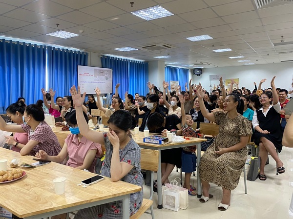 Hội thảo diễn ra sáng ngày 1/7/2023, tại hội trường lớn của bệnh viện Đại học Y Hải Phòng, với sự tham gia của hơn 100 mẹ bầu và gia đình người thân.