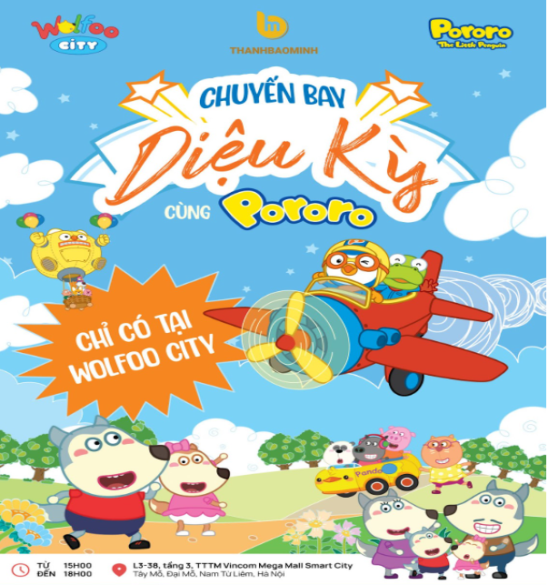 Trong chuyến bay lần này, gia đình Pororo cùng Wolfoo sẽ đem đến cho bé và cha mẹ những bất ngờ chưa từng có: