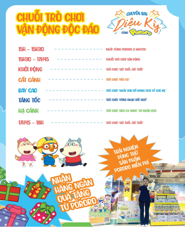 Hy vọng các bạn nhỏ sẽ có những kỷ niệm tuyệt vời cùng Pororo và Wolfoo trước khi chính thức bước vào chuỗi ngày nghỉ hè sắp tới! Chúc bé và cha mẹ có những trải nghiệm thật vui vẻ và ý nghĩa cùng “chuyến bay diệu kỳ”.