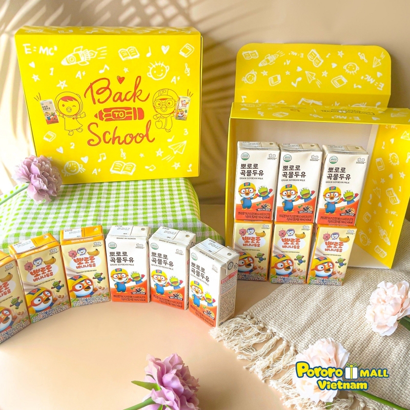 Set Back to School chắc chắn là món quà tuyệt vời để ba mẹ dành cho bé yêu của mình đó. Combo Back to School chính thức có mặt đón mùa tựu trường: bộ 12 hộp mix sữa hạt vị chuối & vị ngũ cốc, 1 cuốn vở Pororo và 1 hộp bút xinh xắn số lượng có hạn.