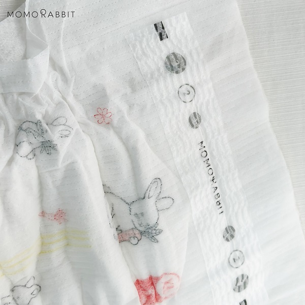 Các vạch báo chỉnh đai trên mẫu bỉm dán Momo Rabbit phiên bản mới nhất năm 2023.