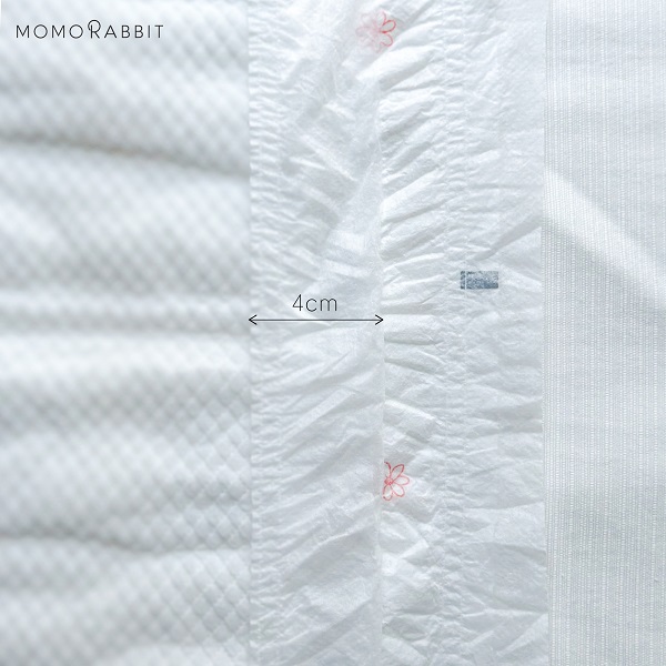 Cải tiến vách chống tràn 4cm rộng hơn so với mẫu cũ 3cm giúp khoá chặt chất lỏng trong bỉm, ngăn trào sang hai bên, đồng thời dịu nhẹ cho da bé.