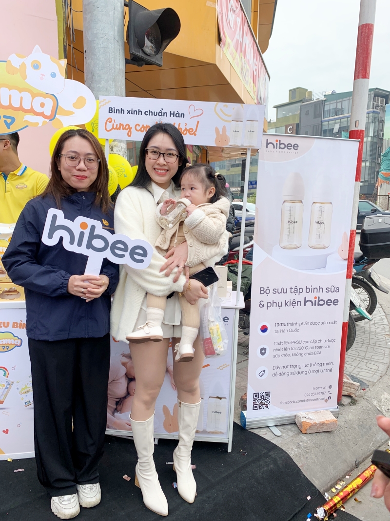 Góp mặt tại sự kiện, Hibee Việt Nam mang tới cơ hội trải nghiệm trực tiếp sản phẩm bình sữa đang “tạo sóng” trong cộng đồng bỉm sữa Việt với 2 mẫu bình trơn và họa tiết cùng với các phụ kiện như tay cầm, dây hút trọng lực …