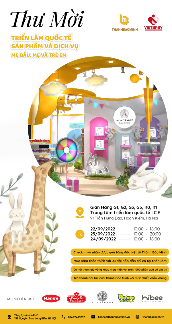 Công ty TNHH Thương Mại Thành Bảo Minh xin trân trọng kính mời Quý đối tác, Quý khách hàng tới tham dự sự kiện Triển lãm quốc tế sản phẩm & dịch vụ dành cho mẹ bầu, mẹ và em bé Vietbaby Fair 2022 và trải nghiệm gian hàng của Thành Bảo Minh.